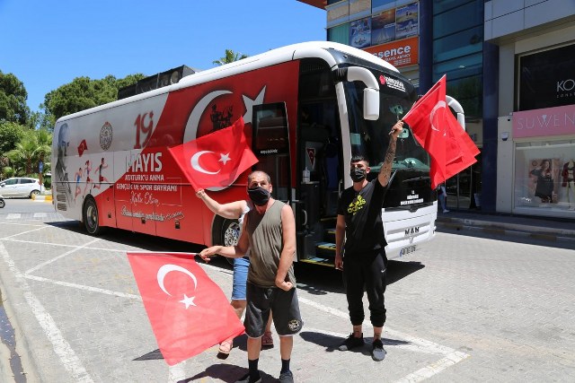 19 Mayıs Atatürk’ü Anma Gençlik ve Spor Bayramı 102. yıldönümü kutlamaları kapsamında Muğla Valiliği tarafından hazırlanan, Muğla İl Gençlik ve Spor Müdürlüğü tarafından koordine edilen Gençlik Otobüsü ilçe ziyaretleri programı kapsamında Fethiye’ye geldi. Ses sistemi ile donatılan otobüsten şarkılar ve marşlar çalınırken; Fethiye caddelerinde ve sokaklarında tur atan Gençlik Otobüsü, salgından dolayı buruk bir sevinç yaşayan vatandaşlara büyük coşku yaşattı.