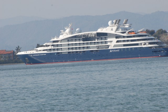 Fransız bayraklı ‘Le JacquesCartier’ kruvaziyeri Fethiye’ye bu yıl ikinci kez geldi. Fethiye Körfezine demir atan 131 metre uzunluğundaki kruvaziyer gemi, iskeleye yanaşamayınca yolcuları filikalarla karaya çıkarıldı. Geminin içerisinde 116 yolcunun olduğu öğrenildi.Antalya Limanından hareket eden Fransız bayraklı ‘Le JacquesCartier’ kruvaziyer gemisi, sabah saatlerinde 116 yolcu ve 92 mürettebatıyla Fethiye Körfezinde Şövalye Adası önünde demirledi.