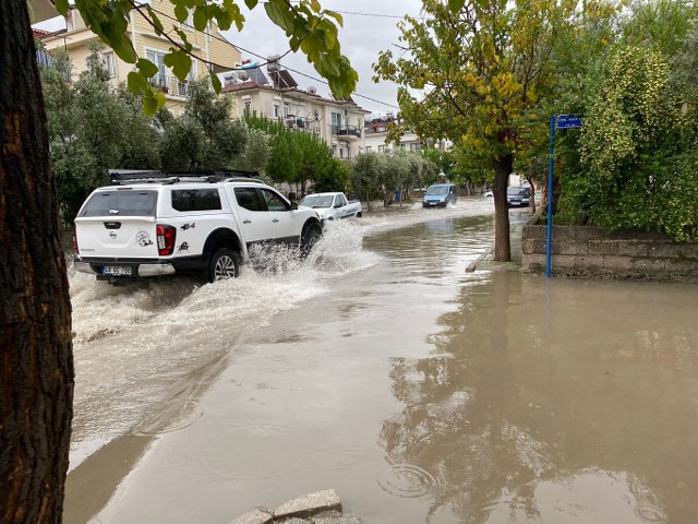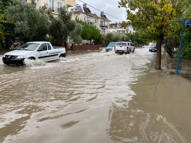 Fethiye’de sağanak nedeniyle bazı iş yerlerini su bastı, yollarda su birikintileri oluştu. İlçede etkili olan sağanak nedeniyle Cumhuriyet Mahallesi Çarşı ile Dispanser caddelerinde bazı iş yerlerini su bastı. İş yeri sahipleri kendi imkanlarıyla dükkanlarına giren suyu boşaltmak için mücadele etti.