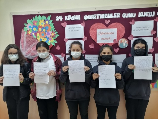 Muğla Seydikemer Eşen Anadolu Lisesi öğrencileri, PKK ve FETÖ terör örgütleri tarafından şehit edilen öğretmenlerin ailelerine 24 Kasım Öğretmenler Günü dolayısıyla mektup ve şiir göndererek yokluğunda şehit öğretmenlerin Öğretmenler Gününü kutladı.