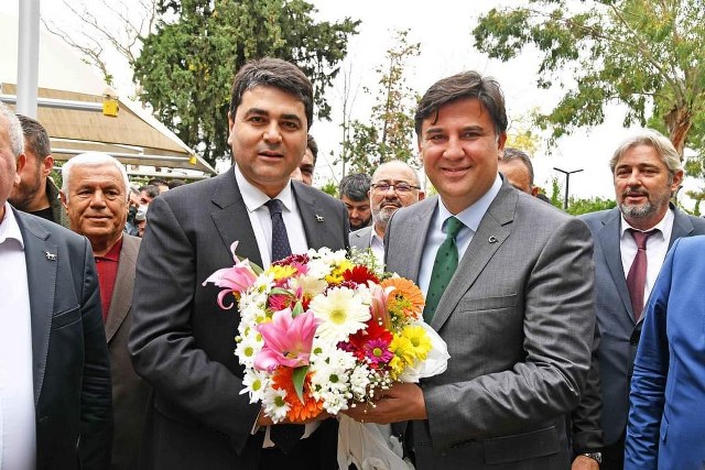Demokrat Parti Genel Başkanı Gültekin Uysal Fethiye Belediye Başkanı Alim Karaca’yı makamında ziyaret etti. Fethiye Belediyesi önünde DP Genel Başkanı’nı bandolu karşılama töreni düzenlendi.