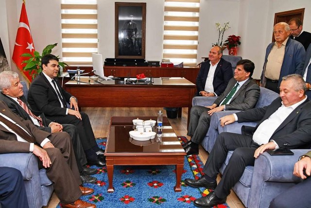 Ardından makam odasında devam eden ziyarette Demokrat Parti Genel Başkanı Gültekin Uysal “Toplumsal bir beklenti var. Bu krizin içinden memleket çıkartılmalıdır. Mesele bir parti meselesi olmaktan çıktığını görüyoruz. Mesela Türkiye’nin üzerine örtülmüş bu karanlık örtüyü hep birlikte kaldırmak mecburiyetindeyiz. Ben önümüzdeki sürecin Türkiye için çok kritik olduğu kanaatindeyim. Demokrasinin en zor sınavıyla karşı karşıyayız. Uzun dönemli bir iktidar hiçbir dönemde yaşanmamış devleti, kurumları ele geçirmek amacıyla sadece ve sadece kendisine destek verenleri devleti, devlet başkanı, yöneticisi olmak gibi bir niyet var. Bizim itirazımız Cumhuriyetin eşit vatandaşları olarak hukukun teminat altına alındığı çoğulcu bir demokrasiyi önümüzdeki süreçte kurmak en temel vazifemizdir. Bunu için önemli bir toplumsal iklim var. Bu büyük ülkede hukuk ve demokrasiyi milli güvenliğimizin en temel şemsiyesi olarak görüyoruz. Bu milli iradeyi temsil eden başta CHP ve DP gelenekleri olan siyasi anlayışlara sahibiz. Önümüzdeki süreçte yeniden hukuki akılla, milli irade ile devletin değerlerinin tanımlanacağı kurumların arasında dengenin ve hiyerarşinin inşa edileceği bu süreçte bu birlikteliğimizin her vesile ile milletimizin adına memnuniyet verici olduğunu görüyoruz. Olumlu katkılar karşılıklı işbirliği, uzlaşı ve ortak paydaları daha da genişletme, milletimizi en geniş ortak payda da buluşturmak istiyoruz. Her gittiğimiz noktada Millet İttifakı içerisinde olan siyasi partilerin yöneticileri, belediye başkanları, ilçe başkanları fazlası ile gerekli nezaketi gösteriyorlar. Bu anlamda Alim Başkan’a her zaman müteşekkirim. Her geldiğimizde bizleri en iyi şekilde ağırladı. Sabah halde ziyaretimiz oldu. İlçe başkanımız, diğer siyasi parti ilçe başkanları vardı. Onlara da teşekkür ederim. Sürekli ziyaretlerimiz oluyor. Bugün Fethiye’deyiz, buradan sonra Dalaman, Ortaca’dan sonra merkeze doğru ilerleyeceğiz. Yarında Milas ve Bodrum’da olacağız. Artık Ankara’da milletin iradesinin demokratik kanallarla milletin meselelerini aktarmasının yetersiz kaldığı noktada biz Anadolu’da gücü kudreti millette arıyoruz. Millete derdimizi, milletin derdini de her bulduğumuz kürsüde ses, soluk, nefes olmaya çalışıyoruz. Bizi karşılayan belediye başkanımıza, ilçe başkanlarımıza, belediye çalışanlarımıza ve belediye bandomuza teşekkür ederim “diye konuştu.