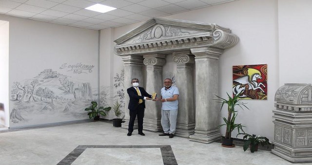 Seydikemer’in tarihi ve kültürel miraslarının tanıtımı, yaşatılması ve yeni nesillere aktarılmasında özverili çalışmalarıyla örnek olan Ressam ve Heykeltıraş Ali Rıza Başarır, Seydikemer Belediyesine strafor tekniği ile yaptığı Likya dönemini anlatan sütunlu kapı ve lahitlerin replikalarının ardından Seydikemer Kaymakamlığına özel çalışma hazırladı. Kaymakamlık binası girişine çizdiği Tlos Antik Kentinin Kara Kalem Çalışması ve yapmış olduğu antik sütunların maketleri büyük beğeni toplayan Ali Rıza Başarır’a Seydikemer Kaymakamı Ayhan Yazgan tarafından teşekkür plaketi takdim edildi.