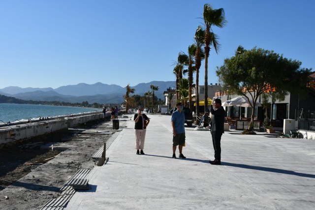 Fethiye Belediye Başkanı Alim Karaca, Çalış Plajında yapılan çalışmaları yerinde inceleyerek, “Çalış bölgesine ve Fethiye’mize çok yakışacak bir projenin sonuna doğru gelmekteyiz. İnşallah 1 Haziran tarihinde çalışmamız bitecek ve Çalış Plajı yeni çehresine kavuşacak” dedi.