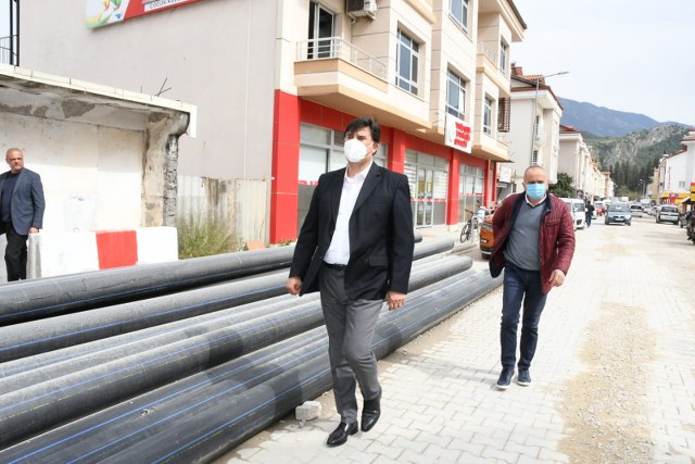 Fethiye Belediye Başkanı Alim Karaca, altyapı çalışmalarının devam ettiği Baha Şıkman Caddesi’nde bulunan esnafları ziyaret etti. Fethiye Belediyesi, MUSKİ, Telekom, Vodafone ve ADM Elektrik Dağıtım AŞ. işbirliğinde sürdürülen alt ve üstyapı çalışmaları Baha Şıkman Caddesi ile devam ediyor. Bu kapsamda çalışmalar hızla ilerlerken, Fethiye Belediye Başkanı Alim Karaca ise bölgede faaliyet gösteren esnafları ziyaret etti. Altyapı çalışmalarının bitmesiyle birlikte Fethiye Belediyesi tarafından sıcak asfalt (BSK) yapılacak bölgede çalışmalar hızla sürüyor. Ölüdeniz Caddesiyle birlikte toplam 2,5 km uzunluğundaki caddede birçok kurum aynı anda işbirliği içinde çalışıyor. Çalışmaların hızla bitmesi için hafta sonu dahil yoğun mesai harcanırken, Fethiye Belediye Başkanı Alim Karaca da bölgede hizmetleri yerinde inceledi. Çalışmaları yerinde incelediği süre içerisinde bölge esnaflarını da tek tek ziyaret eden Karaca, altyapı çalışmalarının ardından caddenin tamamına sıcak asfalt çalışmasını başlatacaklarını ifade etti. Bölge sakinleri Karaca’yı samimi bir şekilde karşılarken, birçok vatandaş Karaca ile fotoğraf çekindi. Haber-Foto/Hakan AYKIRI