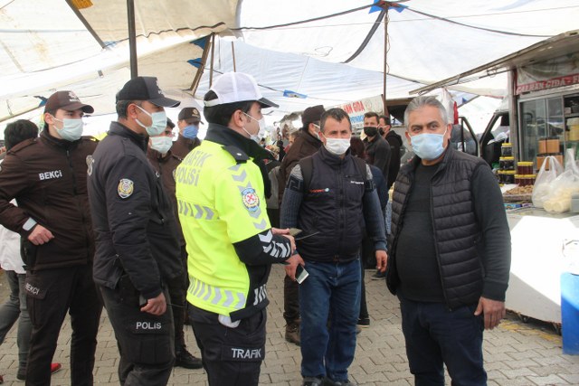Ekipler, pazar yerlerinin girişlerin kontrol noktaları oluşturarak vatandaşları maske konusunda uyardı. Fethiye’nin en büyük pazarı olan, yüzlerce esnafın tezgâh açtığı Salı pazarında gerçekleşen korona virüsle mücadele kapsamında alınması gereken önlemlerin alınıp alınmadığı konusunda denetim gerçekleştiren İlçe Emniyet Müdürlüğü ekipleri, pazarda denetleme gerçekleştirdi. Maske takmayanlara cezai uygulama yapıldı.