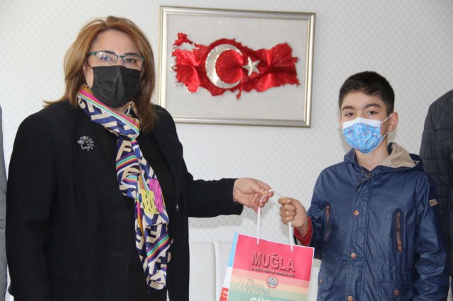 İl Müdürü Töre, öğretmen Ayfer Okulu ve veli Ufuk Özdemir’i öğrencinin başarısından dolayı tebrik ederek konuklarla sohbet etti. Ardından Töre, Mustafa Özdemir’e hediye takdiminde bulundu.