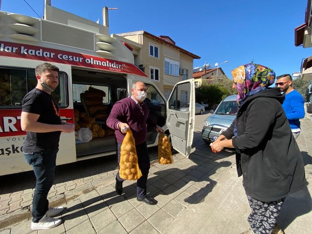 Cumhuriyet Halk Partisi Fethiye ilçe başkanlığı ihtiyaç sahibi vatandaşlara destek olmaya devam ediyor. CHP Fethiye İlçe Başkanı Mehmet Demir, gençlik kolları ile birlikte mahalle mahalle dolaşarak ihtiyaç sahibi vatandaşların evlerinin kapısına çuval çuval patates bıraktılar. CHP Fethiye İlçe Başkanı Mehmet Demir “Fethiye’de gariban, fakir yok diyenlere sesleniyorum, gelsinler bende şuanda 3 bin 200 tane garibanın, yardıma ihtiyaç insanların listesi var” dedi.