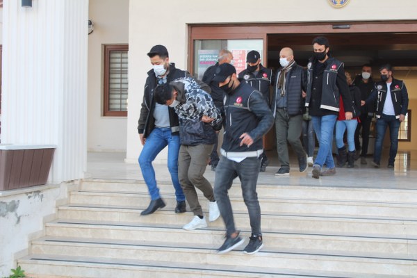 Fethiye Narkotik Birimleri tarafından Fethiye ve Seydikemer bölgesinde gerçekleştirilen Şafak Baskını operasyonu ile göz altında bulunan ikisi kadın olan 4 şüpheli sabah erken saatlerde Fethiye Adliyesine sevk edildiler. Fethiye ve Seydikemer’de 5 adrese yapılan operasyonda 7 şahıs yakalanarak, çok çeşitli ve yüksek miktarda uyuşturucu madde ele geçirildi. Yakalanan 7 şahıs’tan ve aynı zamanda uyuşturucu madde ticaretinden aranmakta olan 2 şüpheli tutuklandı. 1 şahıs ise adli kontrol şartıyla mahkeme tarafından serbest bırakıldı. Gözaltında bulunan diğer 4 şahısta Fethiye Adliyesine sevk edildi. Şafak Baskını operasyonunda; netflix yazılı 1000 adet ekstasy uyuşturucu hap, 200 gram Skunk, 250 gram esrar ve 56 adet sentetik ecza ele geçirildi.(HABER/FOTO-GÖKHAN AYYILDIZ)