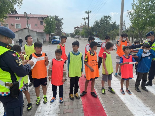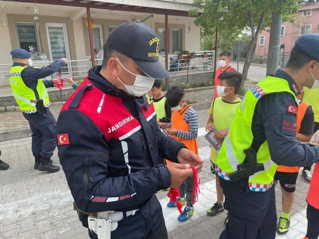 İçişleri Bakanı Süleyman Soylu’nun sosyal medya hesabından yaptığı “30 Mart’ta kırmızı çizgimizi çekiyoruz” paylaşımının ardından tüm yurtta olduğu gibi Fethiye’de; Fethiye İlçe Jandarma Komutanlığı Trafik ekipleri tarafından da yaya geçitlerinde kırmızı çizgi etkinliği gerçekleşti. Yaya geçitlerinde; yayalara öncelik tanınmasına dikkat çekilen kırmızı çizgi etkinliğinde, Fethiye İlçe Jandarma Komutanlığı Trafik Ekipleri Çiftlik Mahallesi Ali Rıza Köse Ortaokulu önünde etkinlik gerçekleştirdi. İçişleri Bakanlığının Genelgesi ile 2021 yılı süresince yürütülecek olan trafik güvenliği ile ilgili faaliyet ve destekleyici kampanyaların etkisini artırmak için Yaya ve Okul Geçitleri öncesinde sürücülerin yer ve zemin işaretlemeleri ile uyarılarak dikkatleri üst düzeye çıkarmak için 30 Mart 2021 Salı günü 12.00/15.00 saatleri arasında Çiftlik Mahallesi Ali Rıza Köse Ortaokulu önünde Okul öğrencileri ile birlikte Yaya Geçidinde “Yaya Õnceliği Kırmızı Çizgimizdir” mottolu ana temalı etkinlik yapıldı. Öğrenciler ve Jandarma Personeli sürücülere broşür dağıtarak yaya geçitlerinde “yaya önceliği” vurgusu yaptılar.