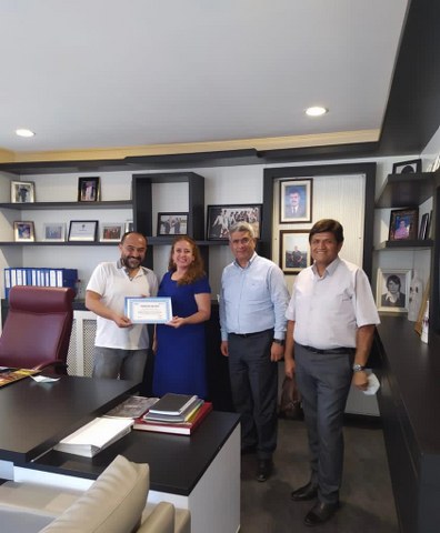 SGK Muğla İl Müdürü Ahmet Ekecen ve Müdür Yardımcısı Hasan Demiröz ile SGK Fethiye İlçe Müdürü Gamze Yılmaz belge alan 6 işletmeye gerçekleştirdikleri ziyarette, işletme yöneticilerine veya sahiplerine teşekkür belgelerini takdim etti.