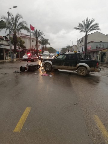 FETHİYE’DE MOTOSİKLET İLE KAMYONET ÇARPIŞTI: 1 YARALI