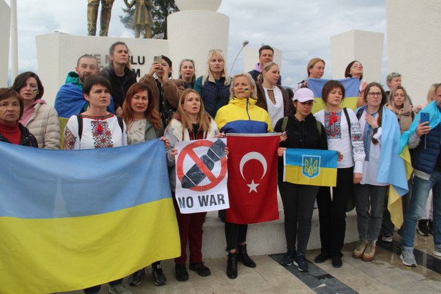 Rusya dün gece saatlerinde devlet başkanı Wilademir Putinîn talimatı ile Ukrayna’nın doğusundaki Donbas şehri ve diğer noktalara yönelik bombardımanlı saldırılara başladI. Bu saldırı tüm Dünya ülkelerinde tepkiyle karşılanırken, Fethiye’deki yaşayan yerleşik Ukrayna’lı vatandaşlarda sosyal medya üzerinden bir araya gelerek savaşa tepkilerini Atatürk Anıtı önünde Ukrayna Milli Marşını söyleyerek gösterdiler. Önce Fethiye Belediyesi Özer Olgun Kültür Merkezi Salonu önünde toplanan bir grup yerleşik Ukrayna’lı vatandaş, Türk ve Ukrayna Bayrakları açarak, Rusya’nın saldırısını kınadılar. Yaklaşık 50 kişilik Ukrayna’lı grup, daha sonra Beşkaza Meydanı Atatürk Anıtı önünde bir araya gelip, Ukrayna ulusal Marşını söylediler. Ellerinde “Savaşa Hayır” yazılı afişlerde bulunan Ukraynalılar “Yaşasın Ukrayna, Savaşa Hayır, Kahrolsun Putin” şeklinde slogan attılar.