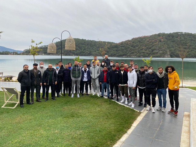 TFF 3. Lig 2. Grupta 1. Yarıyı lider olarak bitiren Fethiyespor Ölüdeniz’de moral depoladı. Fethiyespor, Hotel Meri’nin konuğu olarak katıldığı yemekte şampiyonluk rüzgârı estirdi. Genç iş adamı Sarper Konakçı, Fethiyespor’a her zaman destek vereceklerini ifade ederek, 100 Bin TL bağışta bulundu. 3.Lig 2. Grupta mücadele eden ve ligin ilk yarısını averajla lider tamamlayan Fethiyespor, Fethiye’nin gözde hayallerinden Hotel Meri’nin konuğu oldu. Tüm takım oyuncularının katıldığı Fethiyesporlu kafileyi Hotel Meri işletmecisi Sarper Konakçı ve Fethiyesporun geçmiş dönem yöneticilerinden iş adamı Salih Dündar karşıladı. Lâcivert Beyazlı takımın oyuncularının moral ve motivasyonlarının oldukça yerinde olduğu gözlemlenirken, takımın gol krallarından Yakup Alkan, misafirperverliğinden dolayı Hotel Meri işletmecilerine teşekkür etti. Ölüdeniz bölgesinde ticarette yapmak istediğini söyleyen Alkan, “Ligin ikinci yarısında bomba gibi çalışıyoruz. Hedefimiz lig şampiyonluğu” dedi. Kendi tesislerinde Fethiyesporlu oyuncuları ağırlamaktan dolayı çok mutlu olduğunu dile getiren Hotel Meri işletmecisi genç iş adamı Sarper Konakçı,” Şehrimizin takımının başarısı için elimizden gelen her şeyi yapmaya hazırız. inşallah bu takım bu yıl olması gereken yerde olacak” diye konuştu. Lâcivert Beyazlı takımın Fethiye’nin markası olduğuna değinen İş adamı Salih Dündar ise, ” Fethiyespor, formunu yakalamış ve ligin ilk yarısını galip tamamlamış bir takım konumunda. Tüm şehir kenetlenerek, takımımızın arkasında olacak ve bu takımı başarılı görmek istiyoruz” dedi.(HABER/GÖKHAN AYYILDIZ)