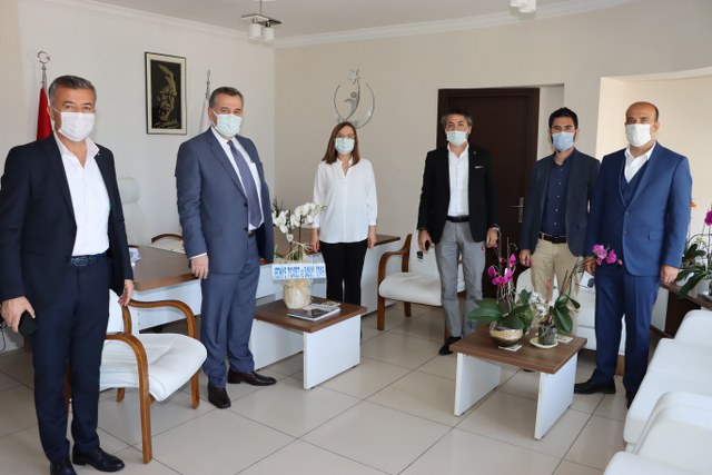 Fethiye Ticaret ve Sanayi Odası (FTSO) Yönetim Kurulu, Fethiye İlçe Sağlık Müdürü Dr. Ruhsar Doyuk’u ziyaret ederek, pandemi günlerinde fedakarca hizmet veren kadın sağlık çalışanları nezdinde tüm kadınların 8 Mart Dünya Kadınlar Günü’nü kutladı. FTSO Yönetim Kurulu Başkanı Osman Çıralı, Başkan Yardımcısı Kemal Hıra, Sayman Üye İbrahim Erdem, Yönetim Kurulu Üyeleri Ramazan Dim, Emre Başaran 8 Mart Dünya Kadınlar Günü dolayısıyla Fethiye İlçe Sağlık Müdürü Dr. Ruhsar Doyuk’u makamında ziyaret eti. COVID-19 virüsünün neden olduğu küresel salgın nedeniyle kadın sağlık çalışanlarının son bir yıldır, yeri geldiğinde çocuklarına ailelerine hasret kalarak, sağlıklarını hiçe sayarak çok zorlu koşullara çalıştığını hatırlatan FTSO Yönetim Kurulu Başkanı Osman Çıralı, “İlçe Sağlık Müdürümüz Dr. Ruhsar Doyuk nezdinde tüm sağlık çalışanlarımıza bir kez daha şükranlarımızı sunuyoruz. Başta Sağlık çalışanı kadınlarımız olmak üzere dünyayı sevgileriyle, emekleriyle iyileştiren, güzelleştiren, hayatımıza anlam katan tüm kadınlarımızın 8 Mart Dünya Kadınlar Günü’nü kutluyorum.” dedi. Fethiye İlçe Sağlık Müdürü Dr. Ruhsar Doyuk da FTSO yönetimine ziyaretlerinden duyduğu memnuniyeti dile getirerek, tüm sağlık çalışanı kadınlar adına FTSO yönetimine teşekkür etti.