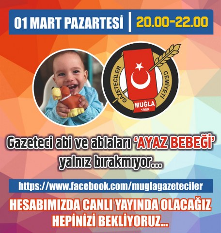 Ayaz bebek için yapılacak canlı yayın https://www.facebook.com/muglagazeteciler hesabı üzerinde gerçekleşecek.
