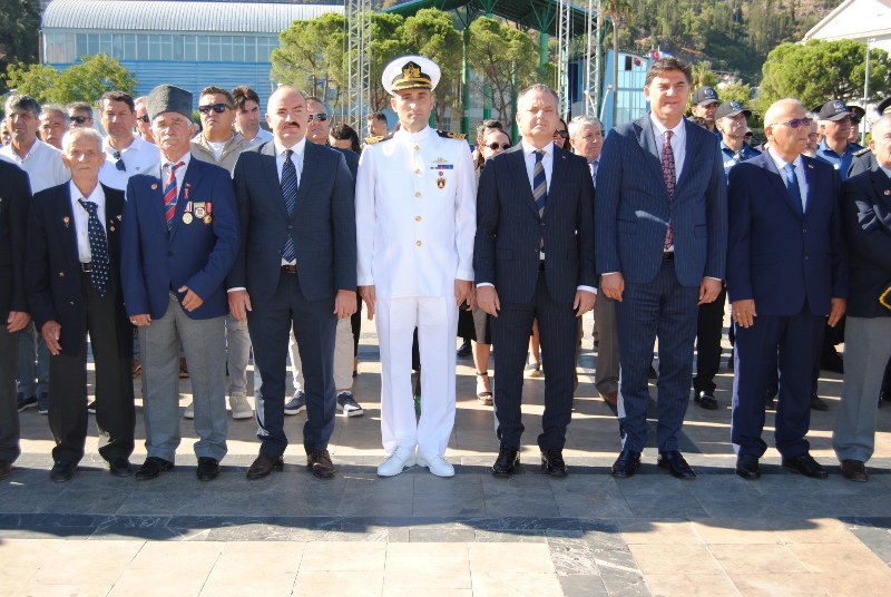 Fethiye Beşkaza Meydanı Atatürk Anıtı önündeki 19 Eylül Gaziler Günü kutlama törenine Fethiye Kaymakamı Fatih Akkaya, Belediye Başkanı Alim Karaca, Garnizon Komutanı Dalaman Üs Deniz Komutan Vekili Yarbay Onur Gülay, Cumhuriyet Başsavcı Vekili Uğur Baş, Fethiye Muharip Gaziler Ve Şehit Aileleri Yardımlaşma Ve Dayanışma Derneği Başkanı Mahmut Topal, Fethiye İlçe Emniyet Müdürü Salih Murat Kara, İlçe Jandarma Komutanı Yaşar Doğu, Sahil Güvenlik Komutanı Burak Akanpınar, AK Parti Fethiye İlçe Başkanı Kadir Sarıhan, kurum müdürleri, siyasi parti ilçe başkan temsilcileri, sivil toplum kuruluşları başkan ve temsilcileri, öğrenciler ve vatandaşlar katıldı.