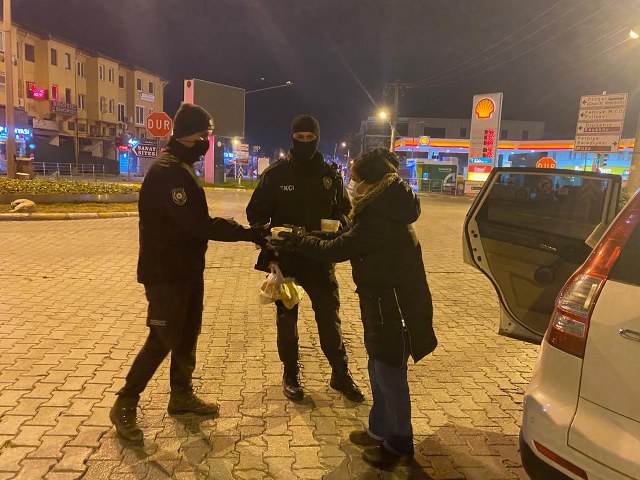 Fethiye’de hayırsever vatandaşlar, gece görevi başında olan emniyet ve sağlık görevlilerine sıcak çorba ikramında bulundular.