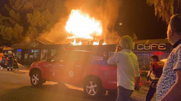 Fethiye’de meydana gelen yangında iki kafe, kullanılamaz hale geldi.