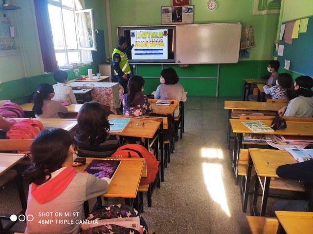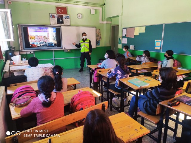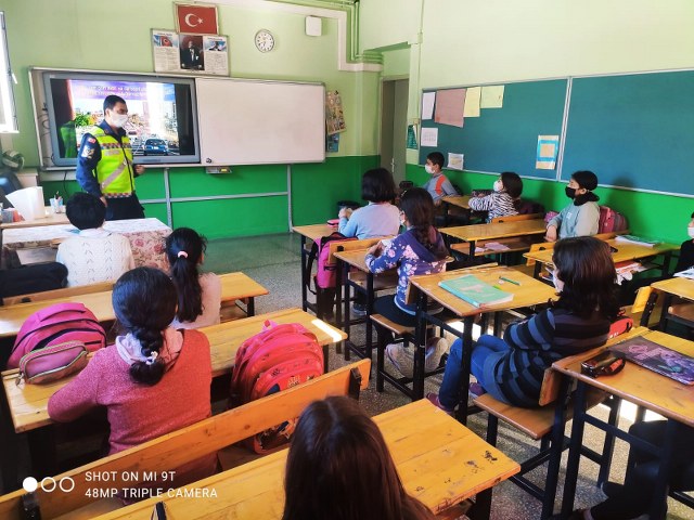 Fethiye İlçe Jandarma Komutanlığı Trafik Timleri sorumluluk alanında trafik denetimlerinin yanı sıra meydana gelebilecek trafik kazalarını önlemek için eğitici faaliyetlerde de bulunmaya devam ediyor. Trafik bilincini oluşturmak için Jandarma Trafik Timi Yeşil Üzümlü İlkokulu öğrencilerine trafikte uyulması gereken temel kurallar, trafik ışık işaret ve levhaları öğretildi. Öğrencilere özellikle; yayaların karayolunda uyması gereken kurallar, öğrenci servislerine  binme- inme, yollarda karşıdan karşıya geçme kuralları,okul geçidi,yaya geçidinden geçme kuralları, bisiklet kullanma kuralları hakkında detaylı eğitim verildi.  Ayrıca; öğrencilere trafik eğitiminde;  özellikle araçlarda yolcu olarak bulunduklarında araç süren büyüklerini emniyet kemeri takmaları ,cep telefonu ile konuşmamaları gibi konularda uyarmaları konusunda bilgilendirme yapıldı.HABER/GÖKHAN AYYILDIZ