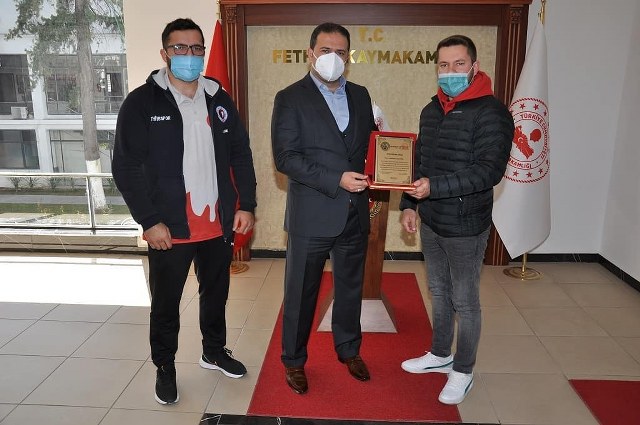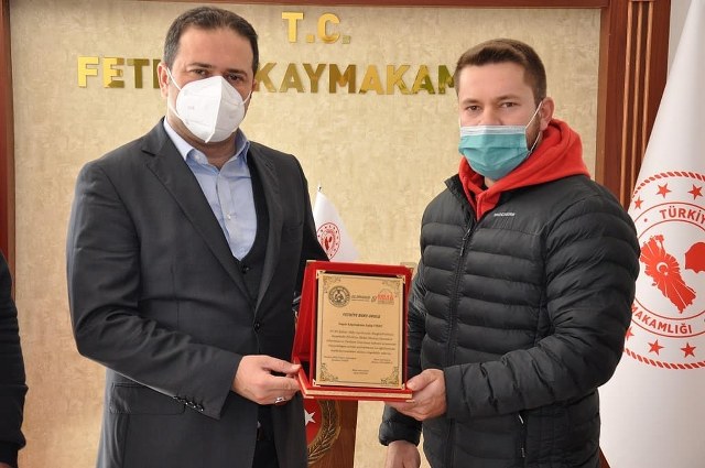 Fethiye Boks Okulu yöneticileri Fethiye Kaymakamı Eyüp Fırat’a teşekkür ziyareti gerçekleştirdiler. Vermiş olduğu desteklerinden dolayı teşekkür eden Fethiye Boks Okulu Yöneticisi Hakan Çınaroğlu ve Boks Antrenörü Sezer Olpak; Kaymakam Eyüp Fırat’a teşekkür plaketi takdim ettiler. Ziyaret ile ilgili yapılan açıklamada “Kaymakamımız Sayın Eyüp Fırat’ı ziyaret ederek 27-28 Şubat tarihlerinde Fethiye Boks okulunda İstanbul Glorious MMA takımıyla düzenlenen eğitim ve gelişim takım çalışmalarına vermiş olduğu desteklerinden dolayı teşekkür plaketi takdim ettik” denildi. HABER/GÖKHAN AYYILDIZ