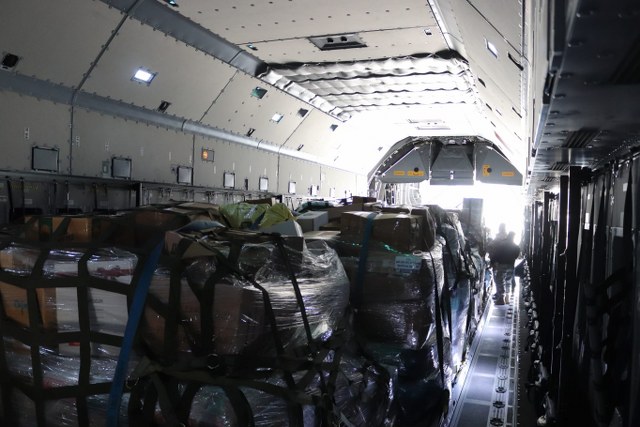 Muğla Valiliği koordinesinde toplanan tıbbi malzeme, gıda, battaniye, su, hijyen malzemesi, ısıtıcı ve kışlık kıyafet gibi 15.265 kg yardım malzemesi Milas – Bodrum Havalimanından askeri kargo uçağına yüklenerek Kahramanmaraş’a gönderildi.