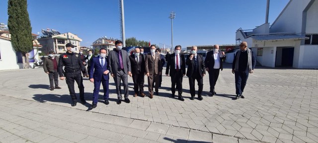 Geçtiğimiz Salı günü ziyaretlerde ve incelemelerde bulunmak amacıyla Fethiye’ye gelen Muğla Valisi Orhan Tavlı; bir günlük aradan sonra Perşembe günü de ziyaretlerine devam etti. Muğla Valisi Orhan Tavlı Fethiyespor’u ziyaret ederek, başarılar diledi. Sabah erken saatlerde ilçemize gelerek; ilk ziyaretini Fethiye Cumhuriyet Başsavcısı Kurtca Eker’e gerçekleştiren Muğla Valisi Orhan Tavlı daha sonra Fethiye Devlet Hastanesini ziyaret etti. Fethiye Devlet Hastanesi ziyaretinden sonra Vali Orhan Tavlı beraberinde Fethiye Kaymakamı Eyüp Fırat ile birlikte Fethiyespor Kulübü’ne ziyarette bulundu. Muğla Valisi Orhan Tavlı’yı Fethiyespor Başkanı Esat Bakırcı, Fethiye Belediye Başkanı Alim Karaca, Ak Parti Fethiye İlçe Başkanı Turgay Öztürk, Gençlik ve Spor İl Müdürü Ömer İlman, Fethiye İlçe Emniyet Müdürü İsmail Ayhan ve Fethiyespor Yönetim Kurulu üyeleri karşıladılar. Vali Orhan Tavlı, kulüp binasına geçerek Fethiyespor Başkanı Esat Bakırcı’dan Fethiyespor’un tarihi, şampiyonlukları ve bu yıl ki durumu hakkında bilgi aldı. Vali Tavlı, Fethiyespor’un devam eden kulüp binası inşaatını da inceledi. Vali Orhan Tavlı, Fethiyespor- Darıca Gençlerbirliği karşılaşmasını da izledi.(HABER/FOTO-GÖKHAN AYYILDIZ)